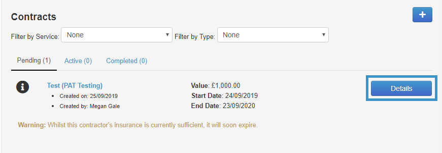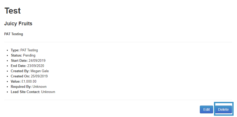 This will open a new page with the contract details. Click delete on the bottom right of the page.