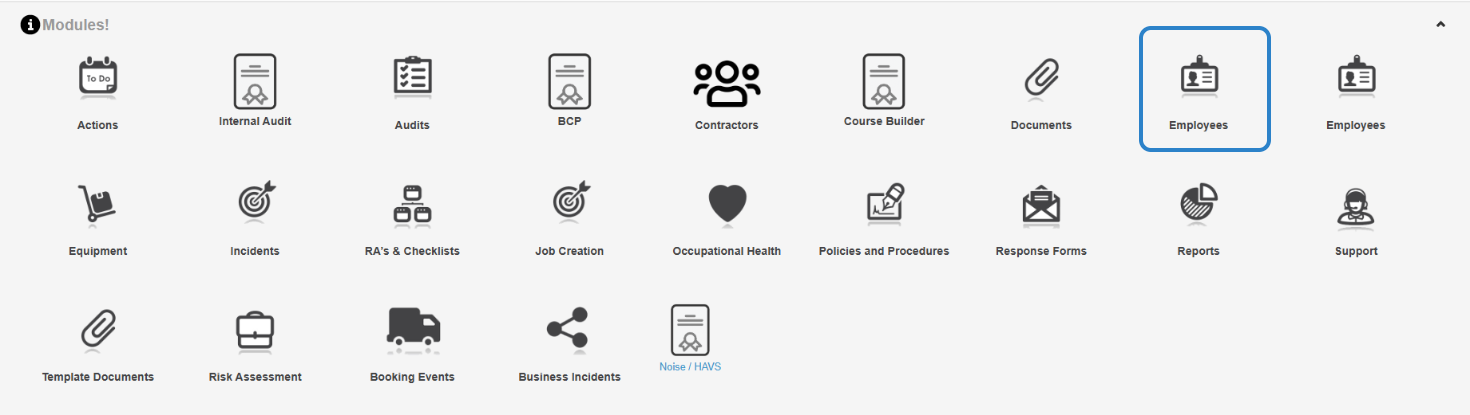From the xCenta Dashboard, click on the Employees icon in the Modules section.